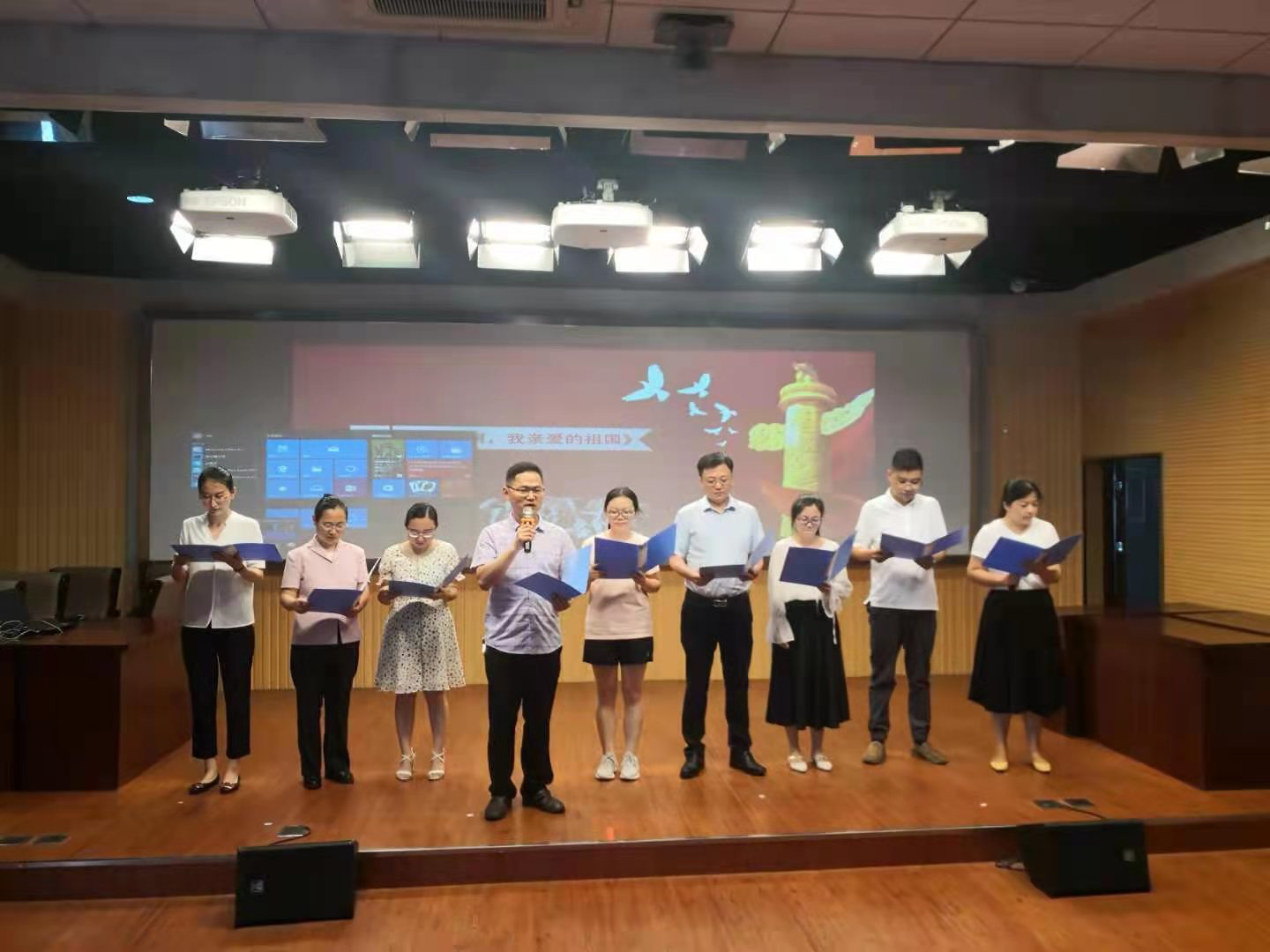 “读红色记忆,诵百年党史”教职工红色经典诗歌朗诵会在全体教职工齐声歌唱《国际歌》的乐曲声中落下帷幕。 (撰稿:李伟;摄影:胡光宇;审核:李亦亮)