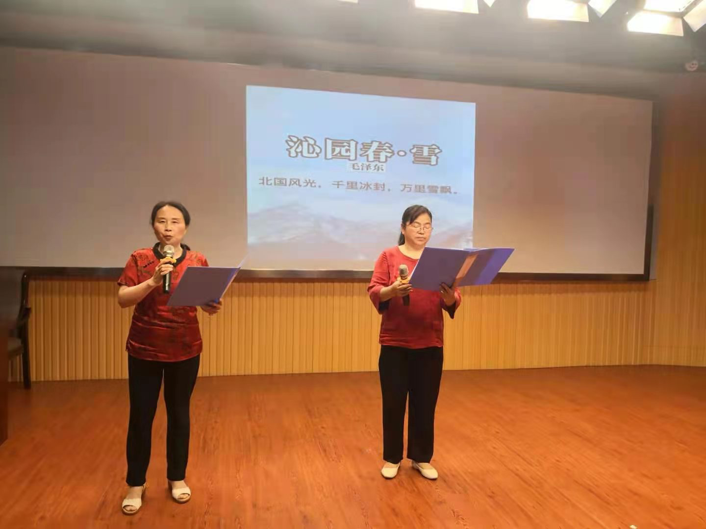 张文和王巧英两位老师带来的中英双语朗诵《沁园春·雪》,让教职工们欣赏了乍暖还寒的北国美丽雪景,展现了伟大祖国的壮丽山河,重温学习了毛主席“九天揽月”的伟大豪迈精神,激发出广大教职工为学校和学院的发展再作贡献的坚强决心和意志。
