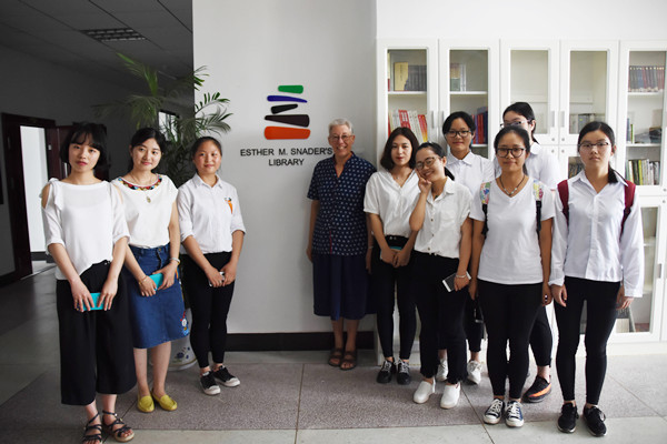 “只有将这些书放在图书馆,才能发挥它们最大的作用。”揭幕仪式上,埃斯特这样说。“把自己心爱的书籍捐赠出去有没有舍不得?”“哦!它们太重了,我才不要背回国。”面对学生的问题,埃斯特幽默地回答,搞怪的表情引得学生们哈哈大笑。埃斯特不愿意大家用“伟大”来形容自己,“将知识分享给更多的人,这是我应该做的,这很普通。”她表示,这些书籍大部分是她从美国带来和在中国收集的,还有一些来自于朋友的捐赠,“能将书籍分享给大家是一件特别而又幸福的事。”
