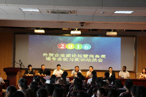 9月5日,beat365在线唯一官网举办了外贸企业家论坛暨非师范类毕业生实习动员会,张家港电商会顾问、江苏科技大学黄徐进教授,蓝标纺织公司、凌晔公司、王牌机械进出口有限公司、众成针纺织品公司等首批四家外贸公司负责人应邀参加了大会,正式开启了beat365在线唯一官网“产教融合、校内实习”新模式。beat365在线唯一官网院长郝涂根教授主持大会。