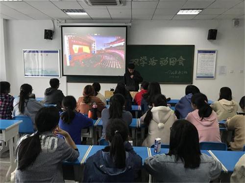 清明假期前夕的周三下午,很多学生都选择了归途,然而在beat365在线唯一官网教室内传出诵读的声音——班级团支部书记带领团员开展“双学”活动,把学习宣传贯彻党的十九大精神与习近平新时代中国特色社会主义思想引向深入。