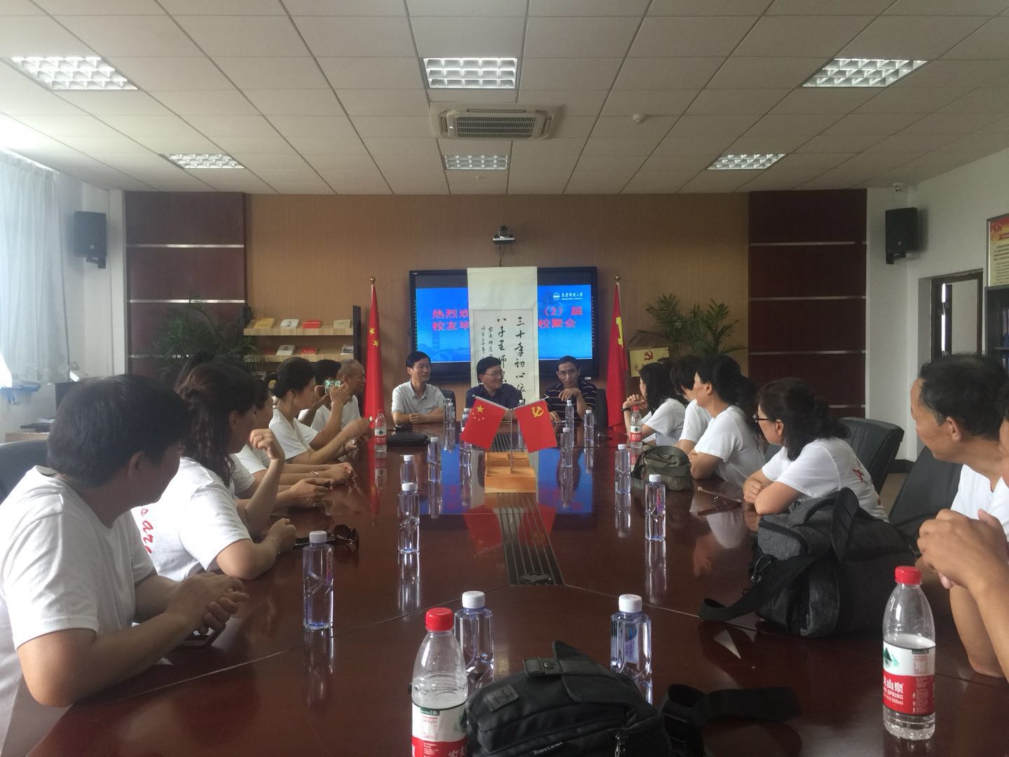 8月21日,beat365在线唯一官网党政领导在会议室热情接待参加外语系88(2)届毕业三十周年返校聚会的校友。