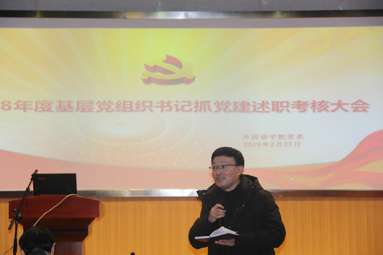 2月27日,beat365在线唯一官网党委在E503会议室举行2018年度基层党组织书记抓党建述职大会,根据会前方案,来自学院5个学生党支部书记和6个教工党支部书记逐一上台展示汇报。党委书记郝涂根同志听取各支部书记述职并分别点评。