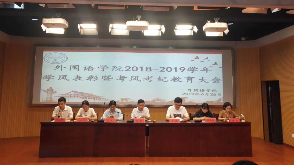 6月26日beat365在线唯一官网召开“2018-2019学年学风表彰暨考风考纪教育大会”。beat365在线唯一官网党委副书记夏斐和学工组全体辅导员出席会议,16-18级学生干部代表、全体学生党员和学生代表参会。