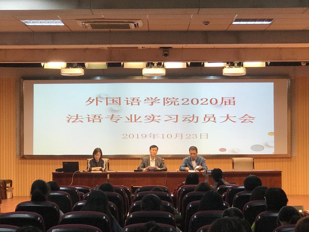 为了使学生进一步了解社会、增强对社会的责任感,更好地实现将大学期间所学的理论与实践相结合, 10月23日,beat365在线唯一官网在E503会议室召开了2020届法语专业毕业生实习动员大会。beat365在线唯一官网主持工作副院长王先荣、副院长江加宏出席了此次会议,法语专业部分教师及2020届法语专业全体同学参加了本次动员大会。