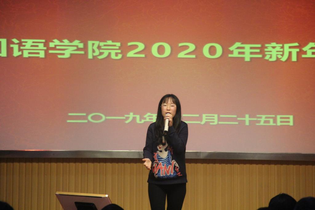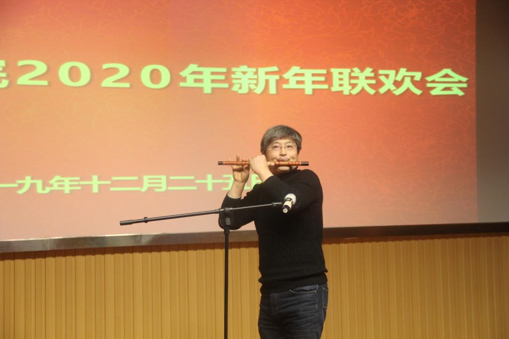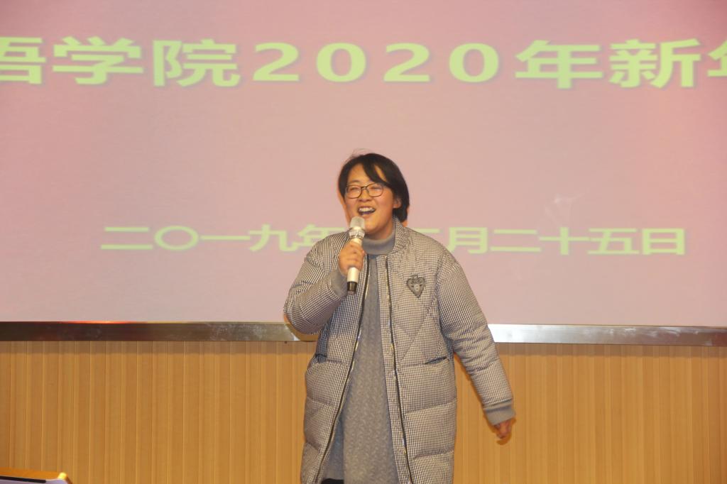 紧接着,在吴羡老师动情演唱的《夜半小夜曲》的歌声中,元旦联欢会正式开始。本次元旦联欢会的节目形式多样,内容丰富,参与热情高。老师们不仅演唱了耳熟能详的黄梅戏经典选段、传唱不衰的经典老歌,还有令人热情澎湃的欧美摇滚金曲。刘凡和杨雯婷老师用汉语、英语和德语三种语言深情款款地为大家朗诵了诗歌《记忆》。学院教工一首《我和我的祖国》的小合唱表达了全体教师炙热的爱国情怀。学院领导也纷纷走上舞台,为同事们倾情演唱歌曲,表达对大家新年的祝福。