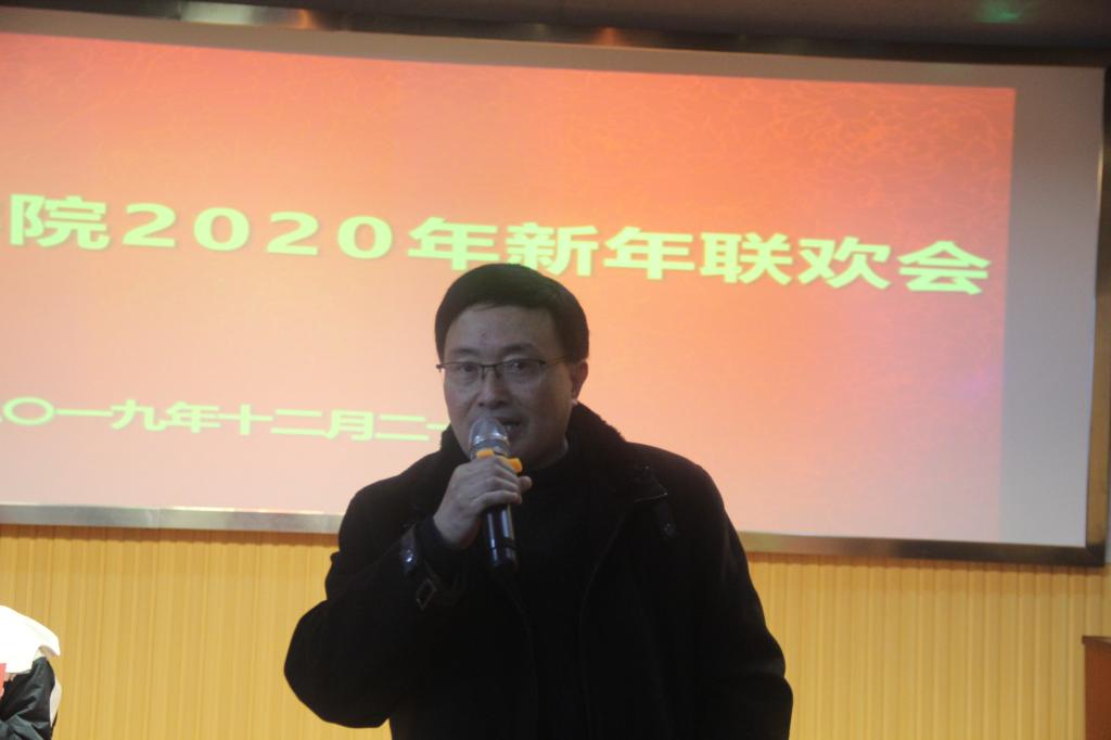 学院党委书记郝涂根同志致辞。他代表学院党政领导班子向一年来辛勤工作在教学、科研、管理和服务一线的学院广大教职工致以新年的问候和诚挚的祝福。