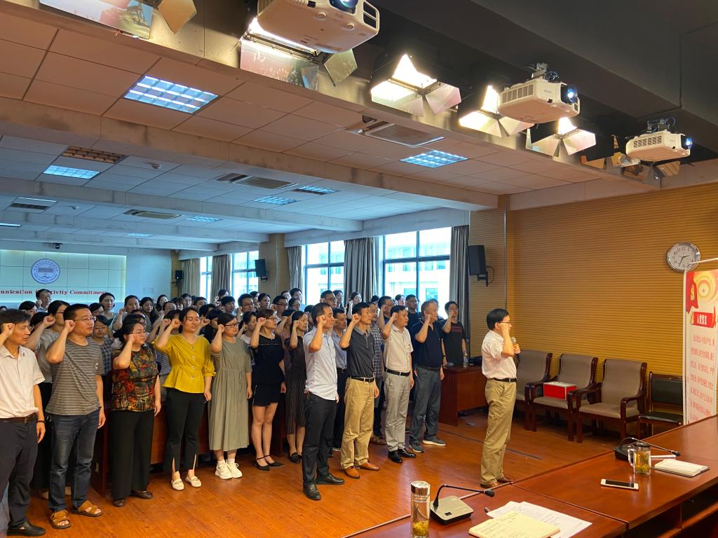 会上,学院党委书记郝涂根带领全体教师党员重温入党誓词。学院党委委员、院长王先荣宣读了党委“七一”表彰决定,对22名教师党员及4名学生党员授予“优秀共产党员”荣誉称号,并颁发了证书。
