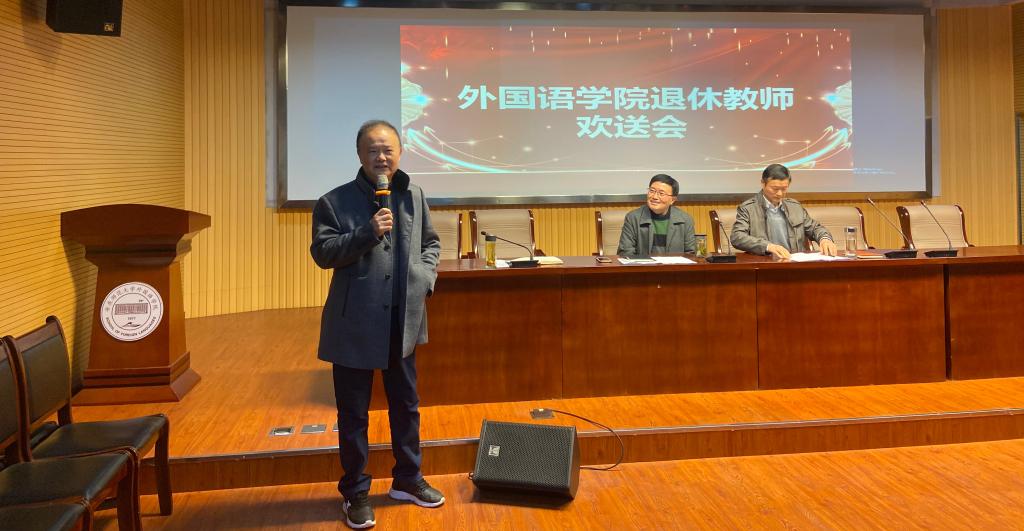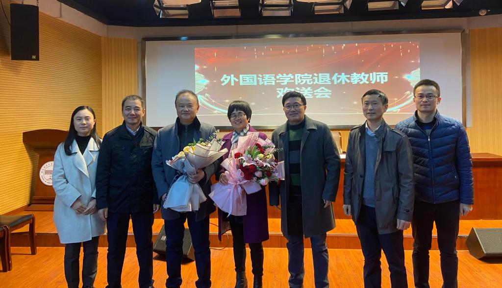 王先荣院长肯定了两位老师多年来兢兢业业、勤勤恳恳的工作,赞扬他们用知识的甘露滋润着学生的心田,用无悔的青春演绎着诗意的人生,为学校和学院的发展,为学生的成长成才贡献了力量,奉献了青春年华。青年教师代表向两位老教师献上了鲜花。两位老师也用简单朴实的话语表达感激之情,诉说内心的不舍。