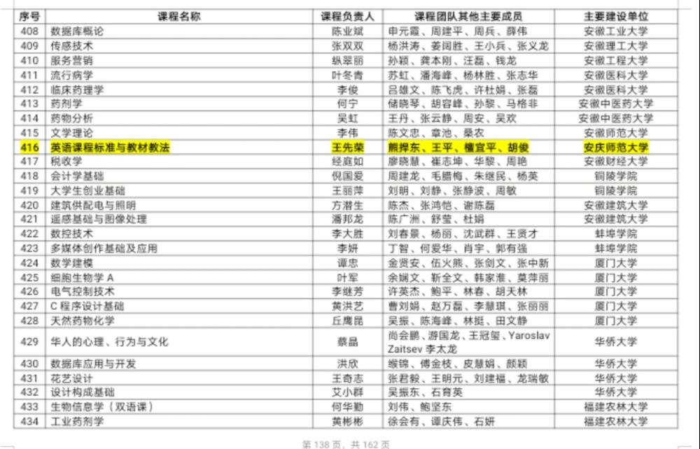 近日,教育部发布《关于公布首批国家级一流本科课程认定结果的通知》(教高函〔2020〕8号),beat365在线唯一官网院长王先荣教授主讲的《英语课程标准与教材教法》课程被认定为首批国家级线上线下混合式一流课程。这是继2019年我校英语专业获批国家级一流专业建设点之后,学校在国家级一流课程领域取得的又一重大突破。