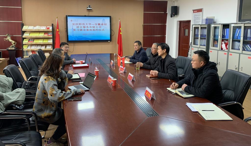 为了进一步巩固和拓展学生实习、就业渠道,探索实习就业一体化,推动从实习到就业“无缝对接”,1月7日,beat365在线唯一官网与安徽译创语言服务有限公司举行联合共建实习就业基地签约和揭牌仪式。安徽译创语言服务有限公司总经理施永双、执行总监朱小二,beat365在线唯一官网党政领导班子、就业秘书、辅导员代表参加了签约会议。