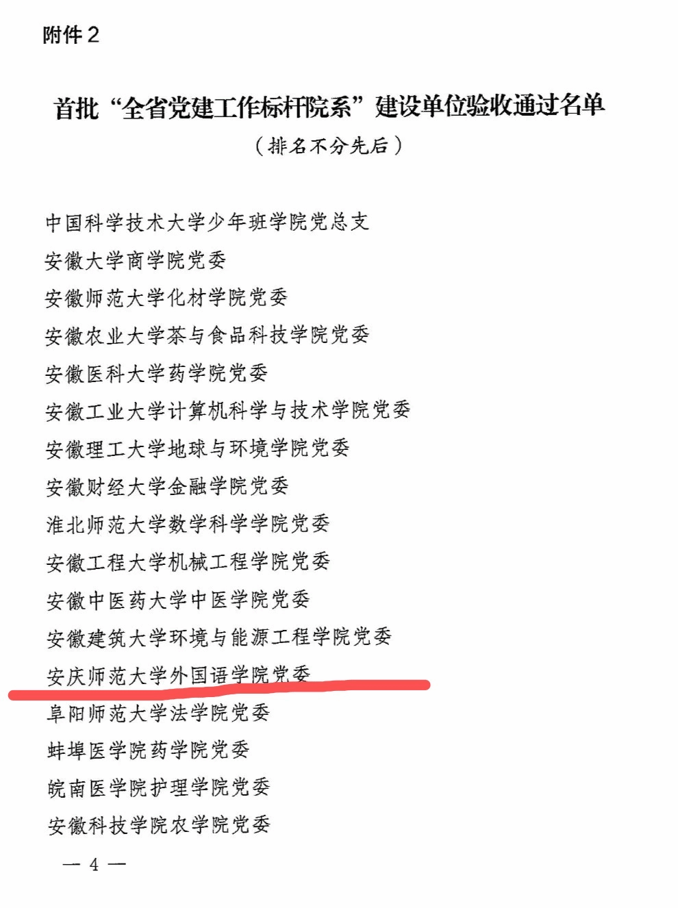 日前,中共安徽省委教育工委陆续公布第二批新时代高校党建示范创建和质量创优工作验收结果、安徽省首批新时代高校党建示范创建和质量创优工作建设单位验收通过名单。我院党委顺利通过全省首批党建工作标杆院系培育创建单位验收。
