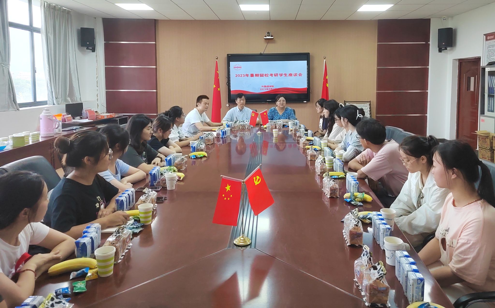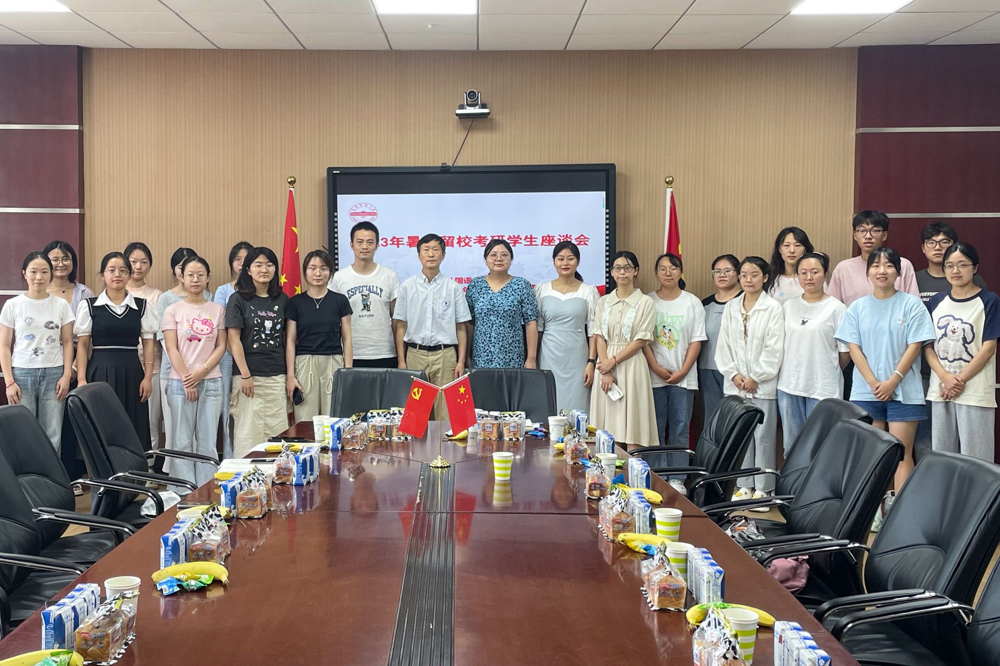 会后,学院为暑期留校学生发放了牛奶、面包等慰问品,表达了对考研学子的关心和祝福。
