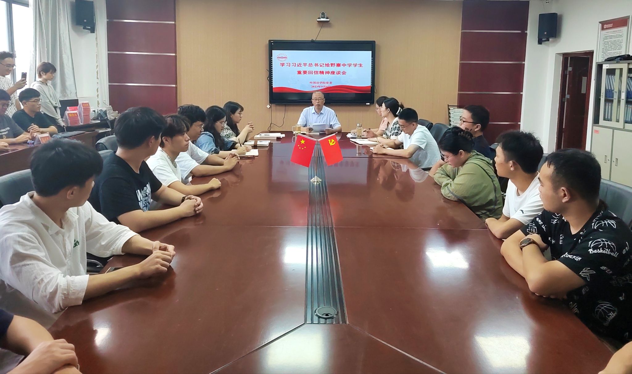 9月4日下午,beat365在线唯一官网在E304召开学习习近平总书记给安徽省潜山野寨中学新考取军校的同学们的重要回信精神座谈会,学院党委书记李亦亮、全体辅导员和毕业班学生代表参加了此次会议,会议由学院党委副书记何媛君主持。