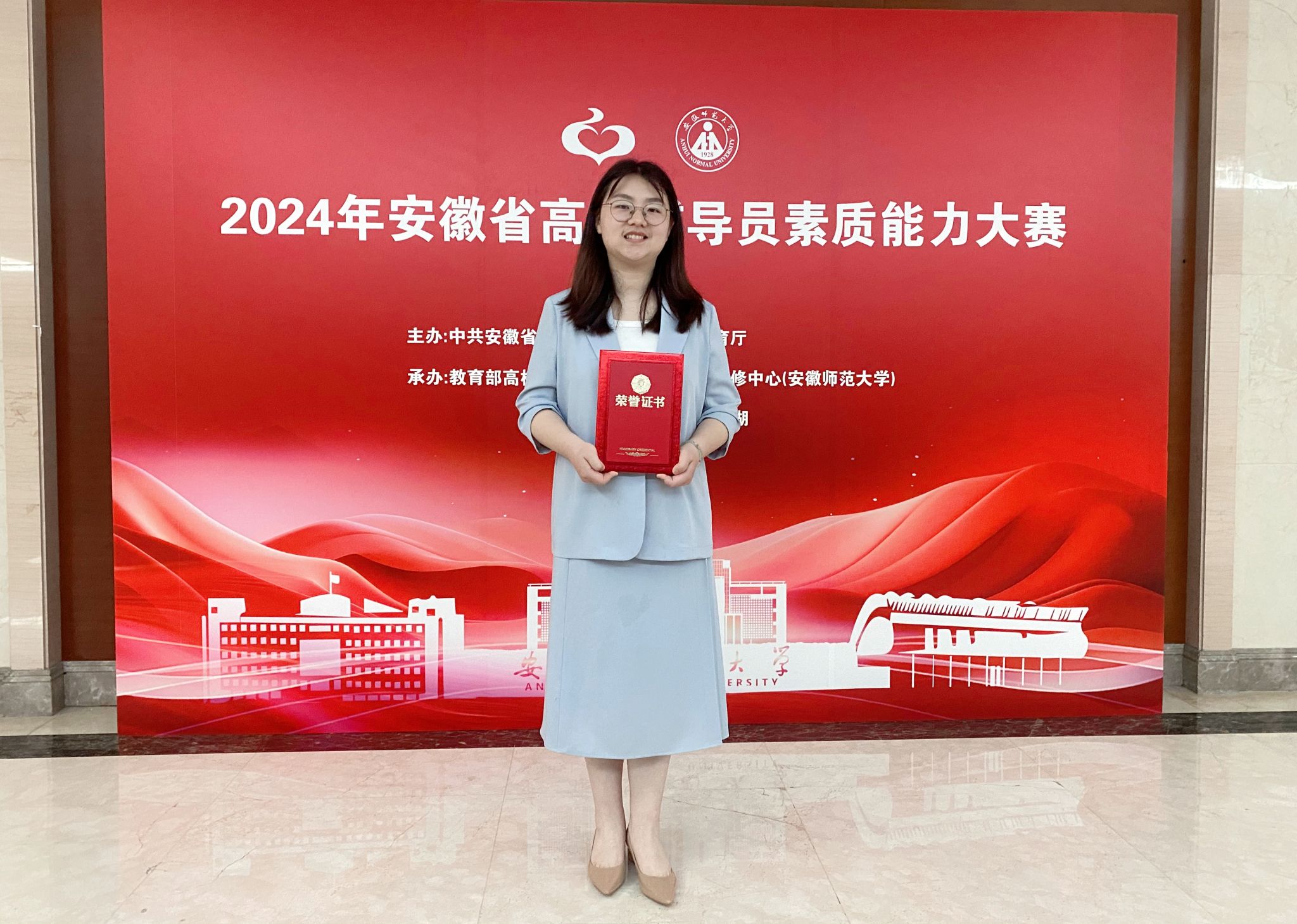 5月9日至11日,安徽省2024年高校辅导员素质能力大赛在芜湖市举行。我院辅导员张沐阳凭借扎实的理论基础、职业能力和现场出色表现,荣获大赛二等奖第一名。