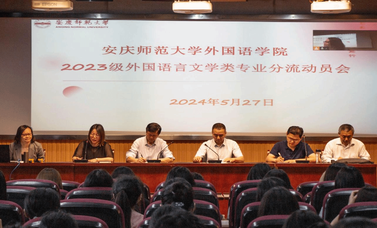 5月27日下午,beat365在线唯一官网于E503召开2023级外国语言文学类专业分流动员大会,并于E314和E316分会场同步直播。beat365在线唯一官网院长王先荣,副院长江加宏、瞿宁霞,外国语言文学类专业负责人,23级辅导员代表以及2023级外国语言文学类专业全体学生参加此次会议。大会由瞿宁霞副院长主持。