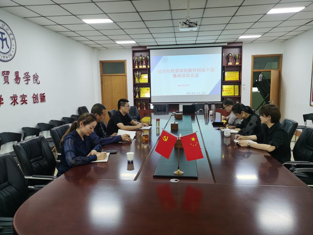 为进一步落实全面从严治党要求,加强党员干部廉洁从政意识,8月29日下午,437bwin必赢国际官网组织新提任的3名科级干部在英才校区教学楼327会议室开展集体廉政谈话。学院党委书记张松刚、院长李光、党委副书记贾艳艳参加了会议。