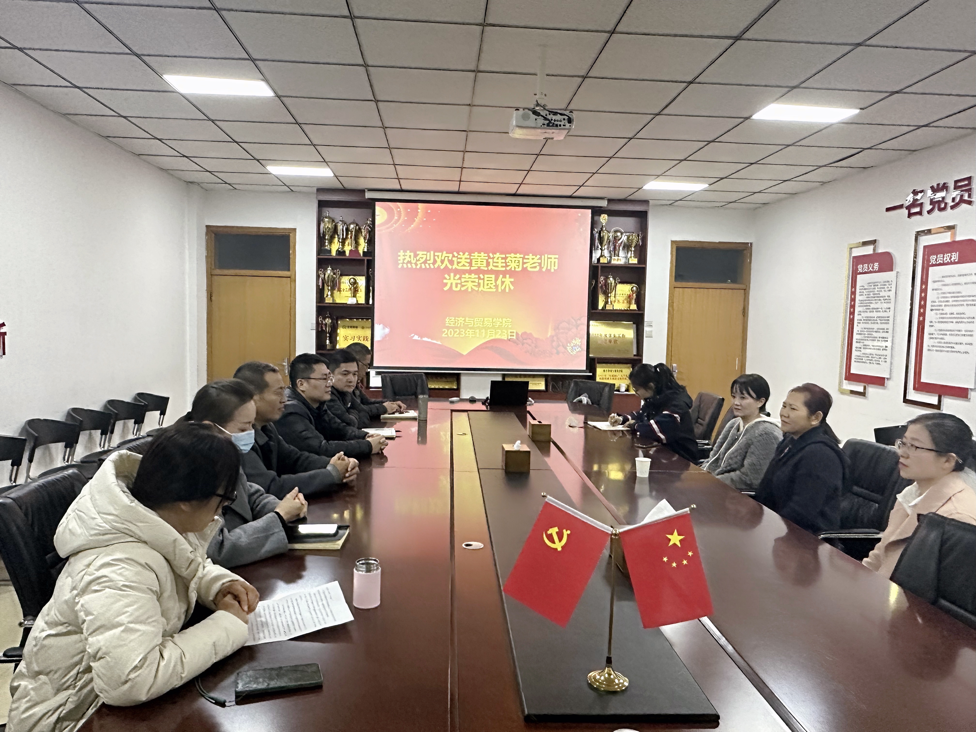 最后,书记张松刚全面评价了黄连菊老师爱岗敬业的职业精神和真诚和善的优良品质,衷心感谢她在实验室管理工作方面上的无私付出和竭诚奉献。希望黄老师在以后的岁月里,永远把“经贸学院”当做自己的家,情系“经贸”,继续关心和支持学院的工作,并祝愿她退休后生活丰富多彩,开启人生的新篇章。