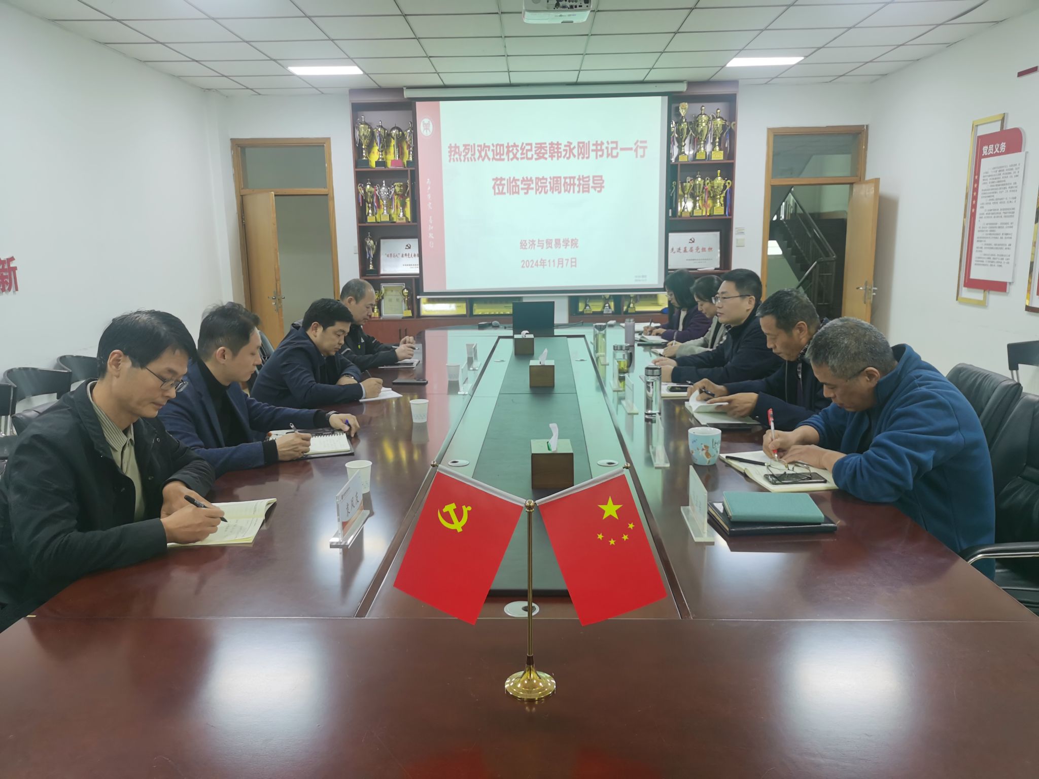11月7日下午,校纪委书记韩永刚莅临必赢国际官网调研指导工作,纪委副书记杨成、英才校区综合服务办公室主任周凯、纪委第三纪检监察室主任袁凤友陪同调研。调研座谈会在英才校区教学楼327会议室举行,院党委班子全体成员参加了座谈。