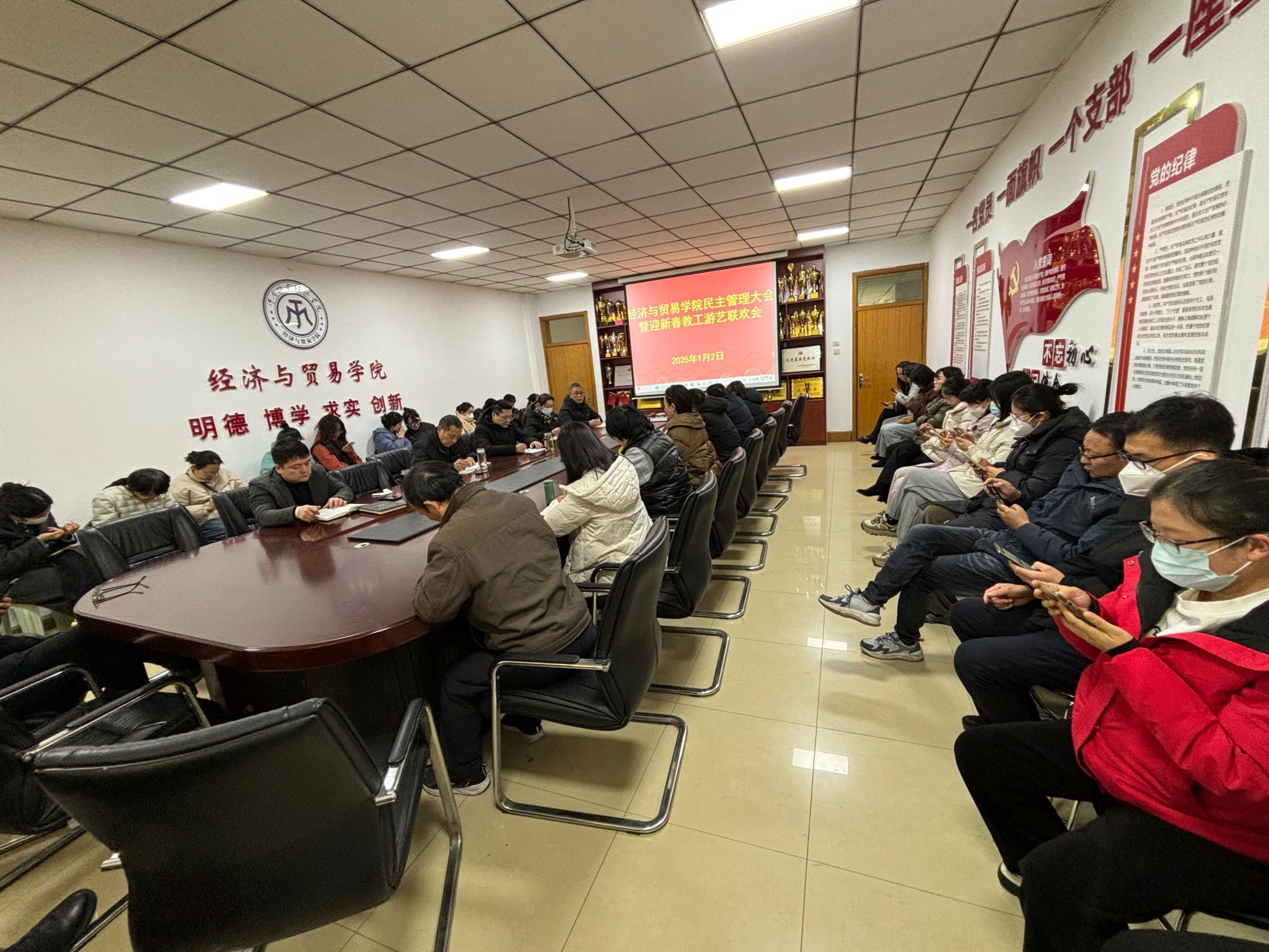 为全面总结工作经验,谋划新一年工作举措,充分发挥民主管理大会的职能作用,让教职工积极参与学院民主管理,推动必赢国际官网民主管理工作提质增效,1月2日下午,必赢国际官网在英才校区教学办办公楼327会议室召开2024年度民主管理大会,共话2024年事业进展,共商2025年发展大计。学院全体教职工参加会议,大会由学院党委书记张松刚主持。