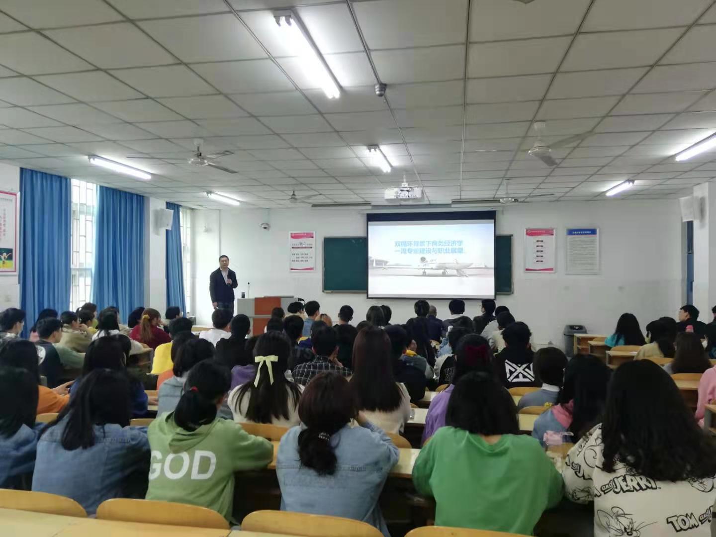 2021年4月8日下午,437bwin必赢国际官网特邀郑州航空工业管理学院经济学院院长、博士后郝爱民教授在英才校区W106教室作“双循环格局下商务经济学专业建设思路与职业期望”的专题讲座,讲座由商务经济学教研室主任郑泽华老师主持,必赢国际官网商务经济学专业全体师生参加了讲座。