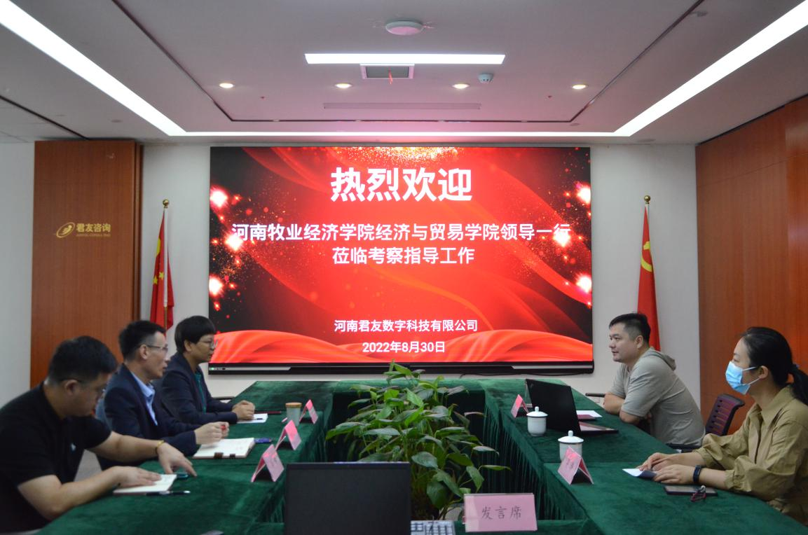 2022年8月30日,437bwin必赢国际官网副院长梅星星、农业经济教研室主任吴静一行赴河南君友数字科技有限公司就深化校企合作进行磋商交流。