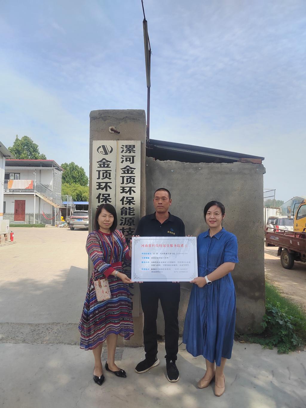 为积极推进我校“百名专家助百村(企)”工程(“双百”工程)实施,2022年9月19日,437bwin必赢国际官网科技特派员吴静博士赴临颍县漯河金顶环保能源技术开发有限公司开展科技服务,助力受援单位提升企业管理与科技创新能力。