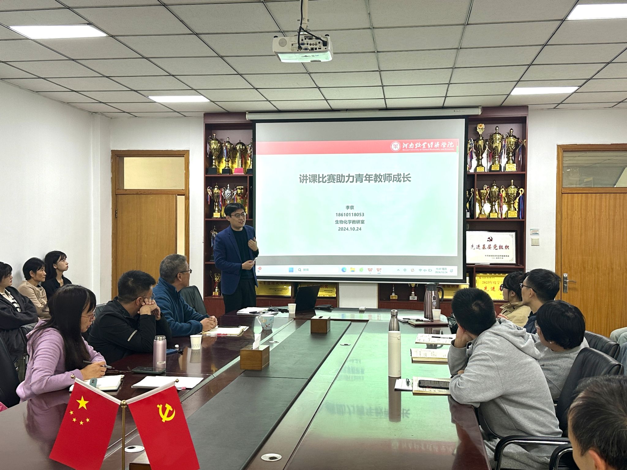 讲座邀请了食品与生物工程学院的李京博士主讲,李博士于2024年河南省教学技能竞赛中荣获理科组一等奖。李博士结合自己丰富的教学比赛经验与实践案例,从如何上好一门课、如何备赛、心理调适等多个维度,为青年教师提供了全面而深入的指导。讲座内容既涵盖了前沿的教学理论,也包含了实用的教学技巧,更不乏对青年教师个人成长与职业发展的深刻思考。