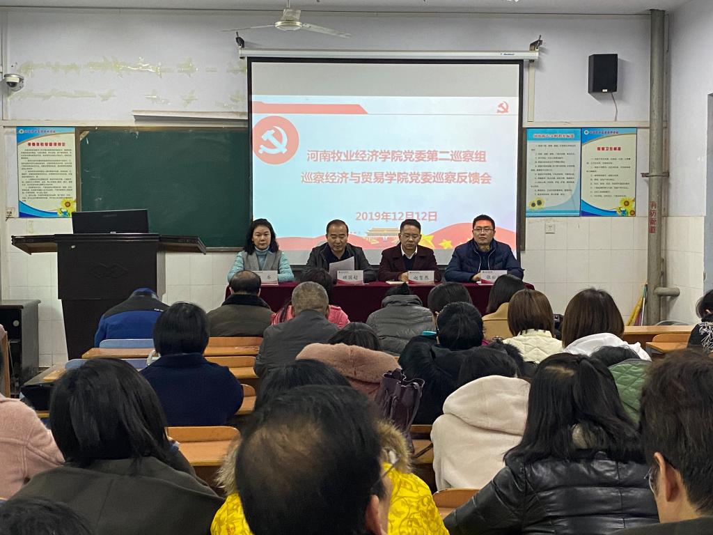 按照校党委巡察工作部署,2019年12月12日下午,校党委第二巡察组巡察437bwin必赢国际官网巡察反馈会在英才校区教学楼A102室召开。学校第二巡察组组长顾国超、副组长赵贺然、成员梁芩、狄波出席会议,经贸学院领导班子成员及学院全体教师参加会议,会议由经贸学院党委书记张松刚主持。