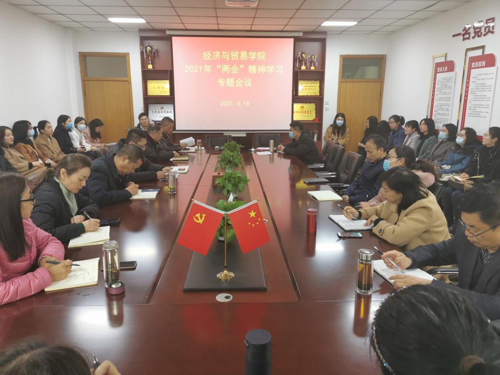 3月18日下午,437bwin必赢国际官网在英才校区327会议室召开2021年“两会”精神学习专题会议,全体教师参加了学习。会议由院党委书记张松刚主持。