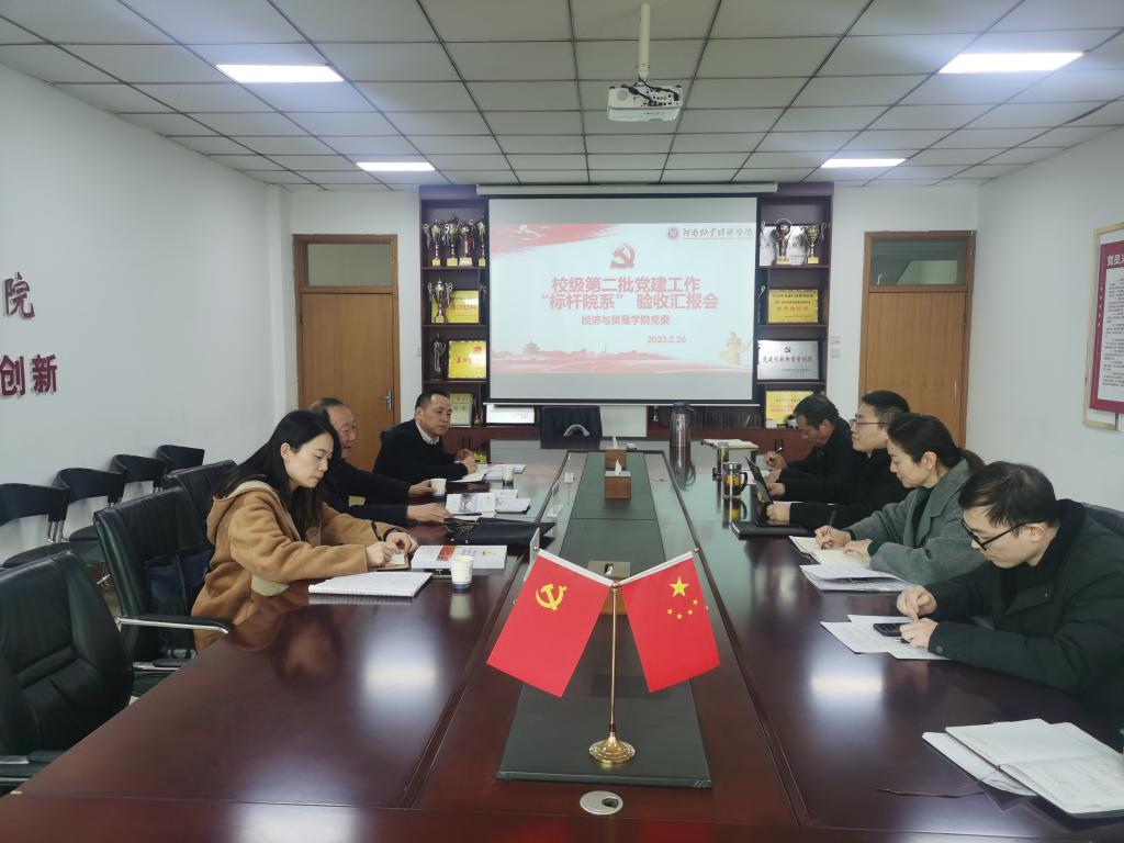 根据《关于开展校级第二批党建工作“标杆院系”、“样板支部”验收工作的通知》(校组〔2022〕58号)文件精神,2月20日下午,学校评审工作组党委统战部部长姬道兴、党委组织部副部长鄢先友、党委组织部(党校)组织科科长刘芸一行莅临必赢国际官网,考察验收必赢国际官网党建“标杆院系”创建工作。党建工作“标杆院系”验收汇报会在学院327会议室召开。院党委领导班子相关成员、各党支部书记参加会议。会议由院党委书记张松刚主持。