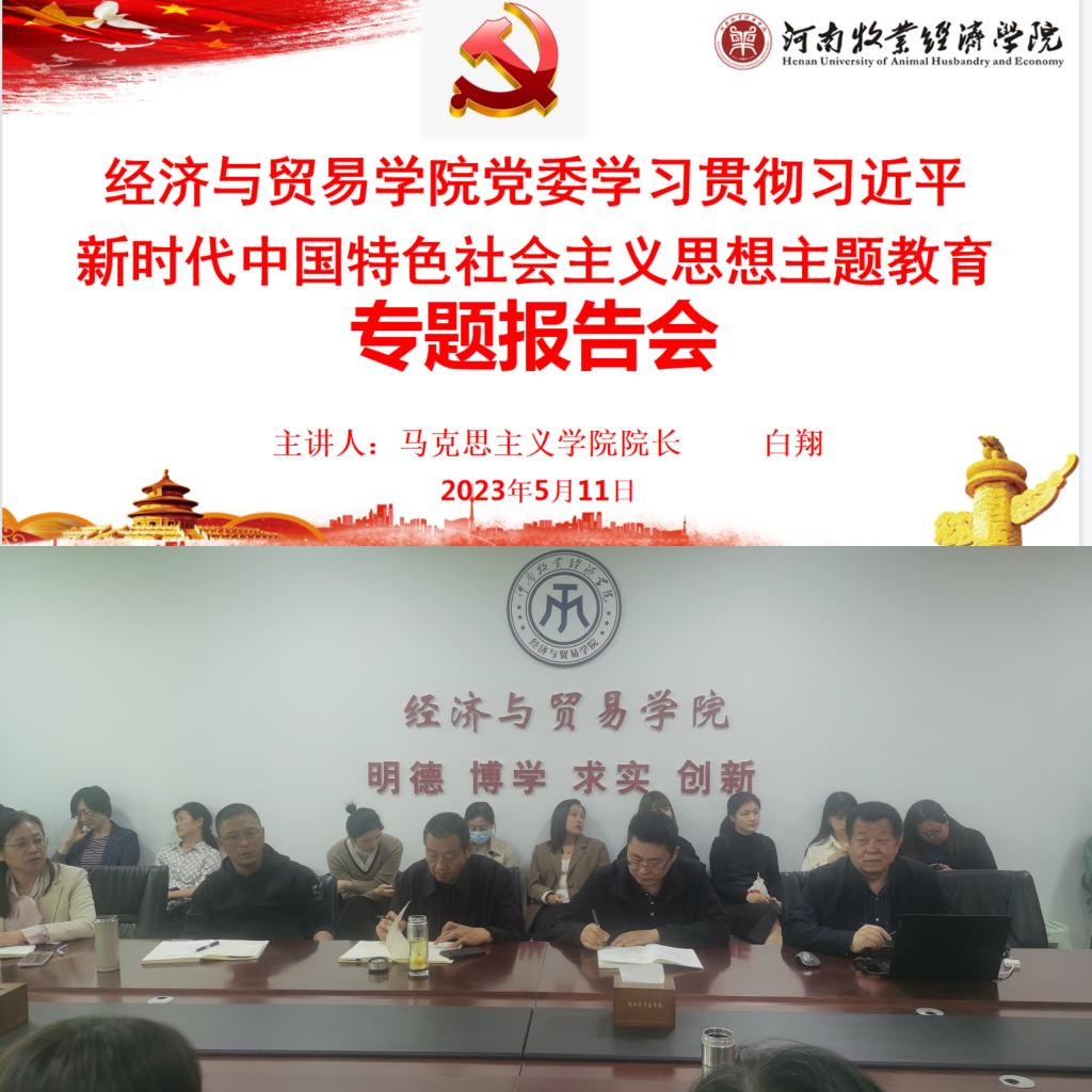 为深入开展学习贯彻习近平新时代中国特色社会主义思想主题教育,提升党员干部理论素养,提升思想认识和业务能力,推动党建事业双向发展,5月11日下午,437bwin必赢国际官网在英才校区教学楼327会议室举行主题教育专题报告会,特邀学校马克思主义学院院长白翔作题为《新时代、新思想、新征程——学习党的二十大精神》的专题报告。学院全体教工党员、全体教职工参加报告会。报告会由院党委书记张松刚主持。