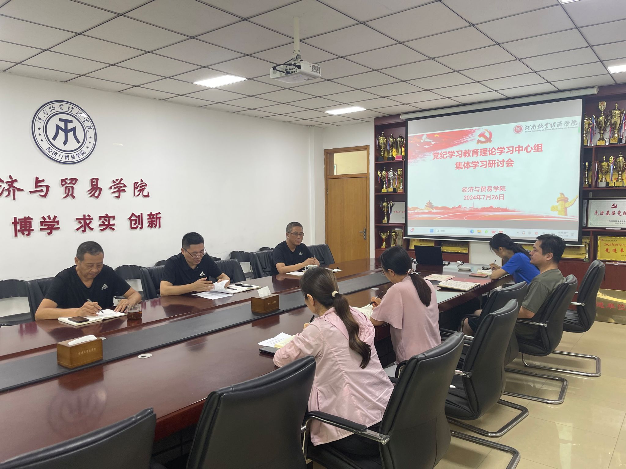 7月26日上午,我院党委在英才校区教学楼327会议室召开二级理论学习中心组集体学习会议,重点学习领会习近平总书记在中央政治局第十五次集体学习时的讲话精神,并根据党纪学习教育安排部署,围绕党纪学习教育进行总结研讨。会议由院党委书记张松刚主持,全体班子成员参加了此次学习。
