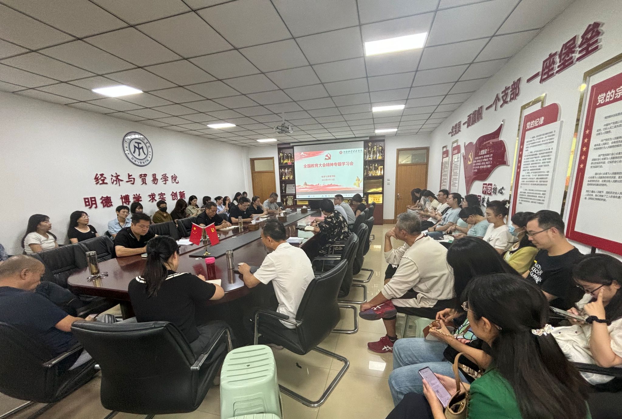 9月12日下午,必赢国际官网在英才校区教学楼327会议室召开全国教育大会精神专题学习会,集体学习了习近平总书记在大会上的讲话精神,全体教职工参会。会议由院党委书记张松刚主持。