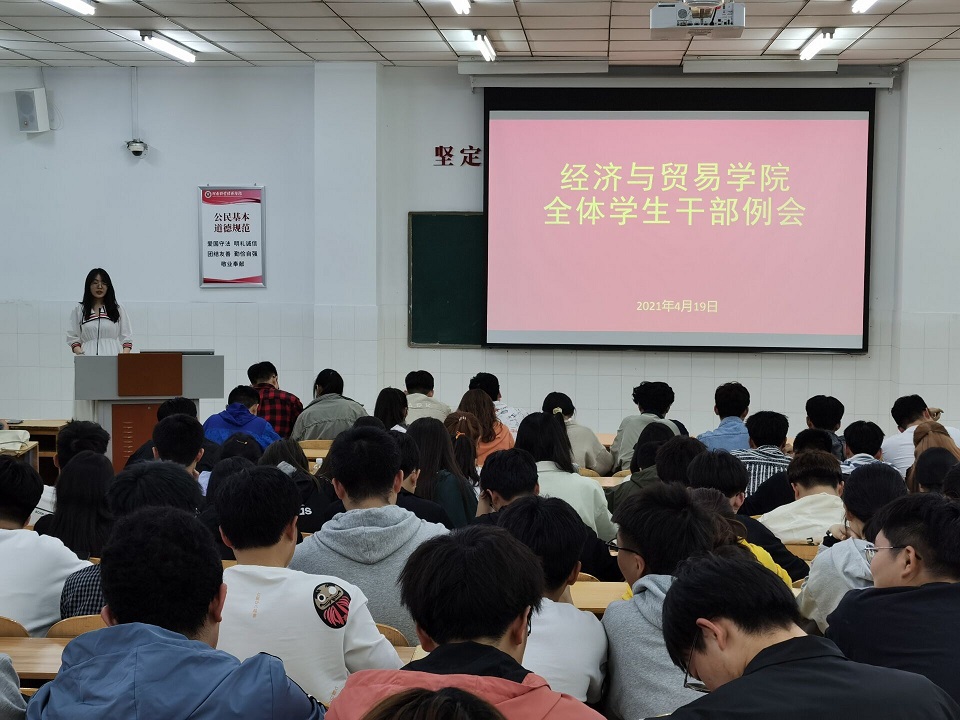 我校评估在即,为促进我校顺利通过本科教学合格评估,更好的展现必赢国际官网学生工作状态、展现必赢国际官网学习氛围。4月19日,必赢国际官网在w109召开全体学生干部例会。团学会全体成员参加会议。