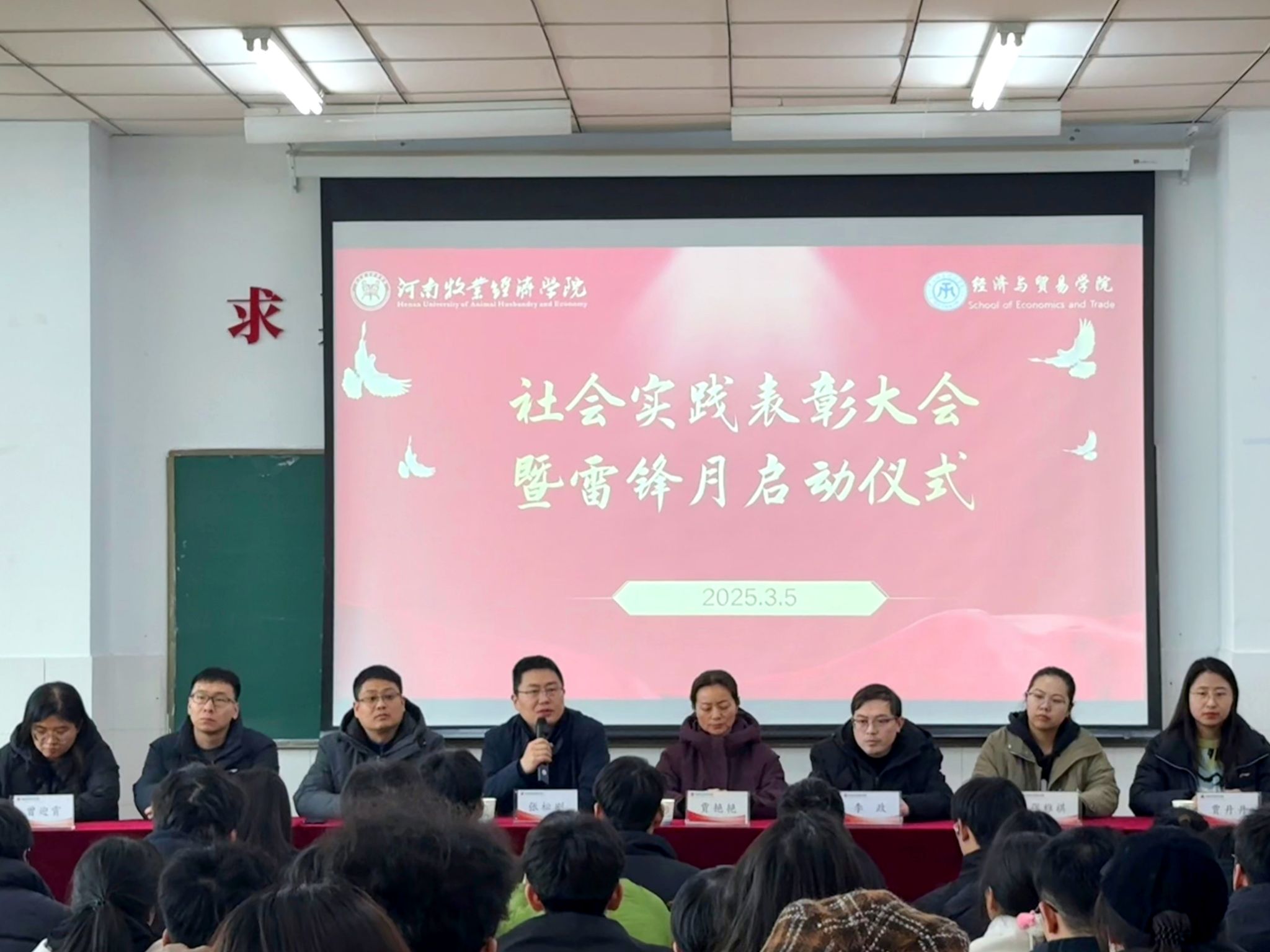 为进一步传承雷锋精神,弘扬“奉献、友爱、互助、进步”的志愿服务精神,3月5日中午,437bwin必赢国际官网于W210举行寒假社会实践表彰大会暨学雷锋志愿服务月启动仪式。院党委书记张松刚、党委副书记贾艳艳,院团委书记(学工办主任)刘佳楠、团委副书记(学工办副主任)李政,全体辅导员老师,全体学会干部,雷锋月各队伍负责人及寒假社会实践表彰人员参会。大会由李政主持。