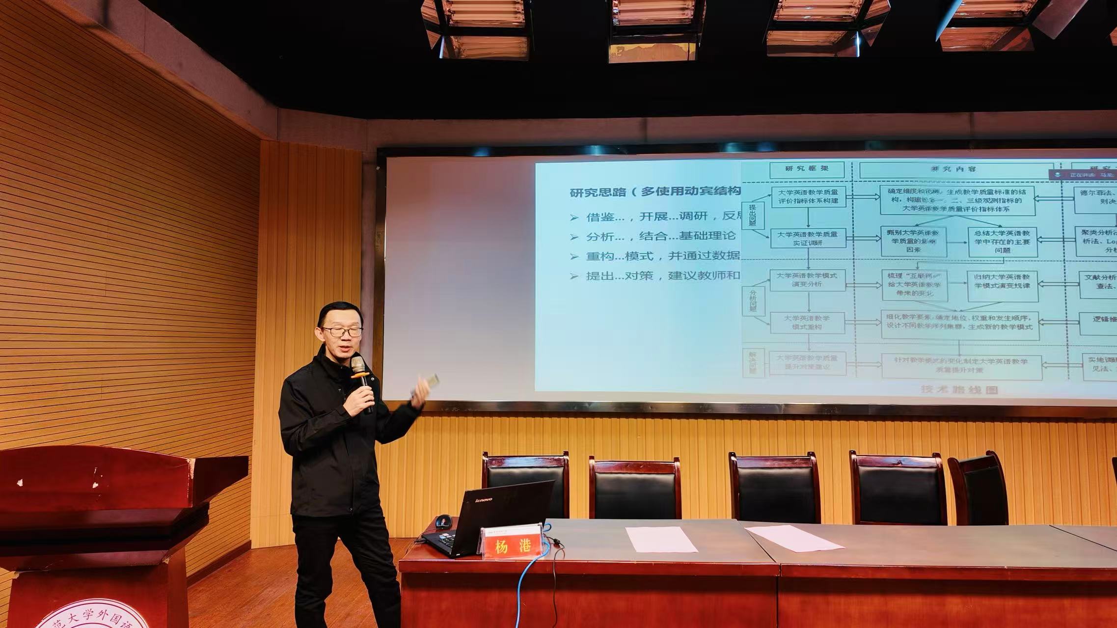 11月21日下午,beat365在线唯一官网举办“AI赋能外语课程设计与学术研究工作坊”活动。上海外国语大学陈坚林教授、上海大学戴朝晖博士、山东大学杨港博士、东南大学李晨博士、上海理工大学黄芳博士应邀作专题报告。beat365在线唯一官网党政班子成员、全体教师、研究生及省内兄弟院校教师代表共150人参加了工作坊。工作坊由副院长瞿宁霞、黄全灿主持。