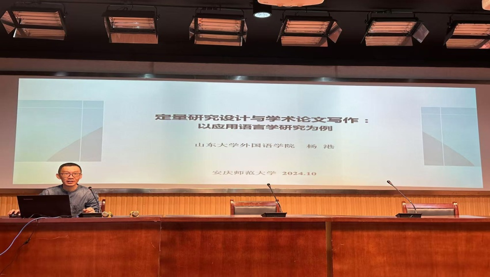 下午,杨港在题为“定量研究设计与学术论文写作”的报告中指出,定量研究方法是应用语言学研究的重要方法之一,主要通过对数值化数据进行统计分析和建模,得出科学的结论和预测。在厘清定量研究基本概念的基础上,他借助具体案例,详细阐释了应用语言学研究中获取、处理、报告、解释数据的过程,阐述了基于定量数据分析的应用语言学学术论文写作思路及行文规范。