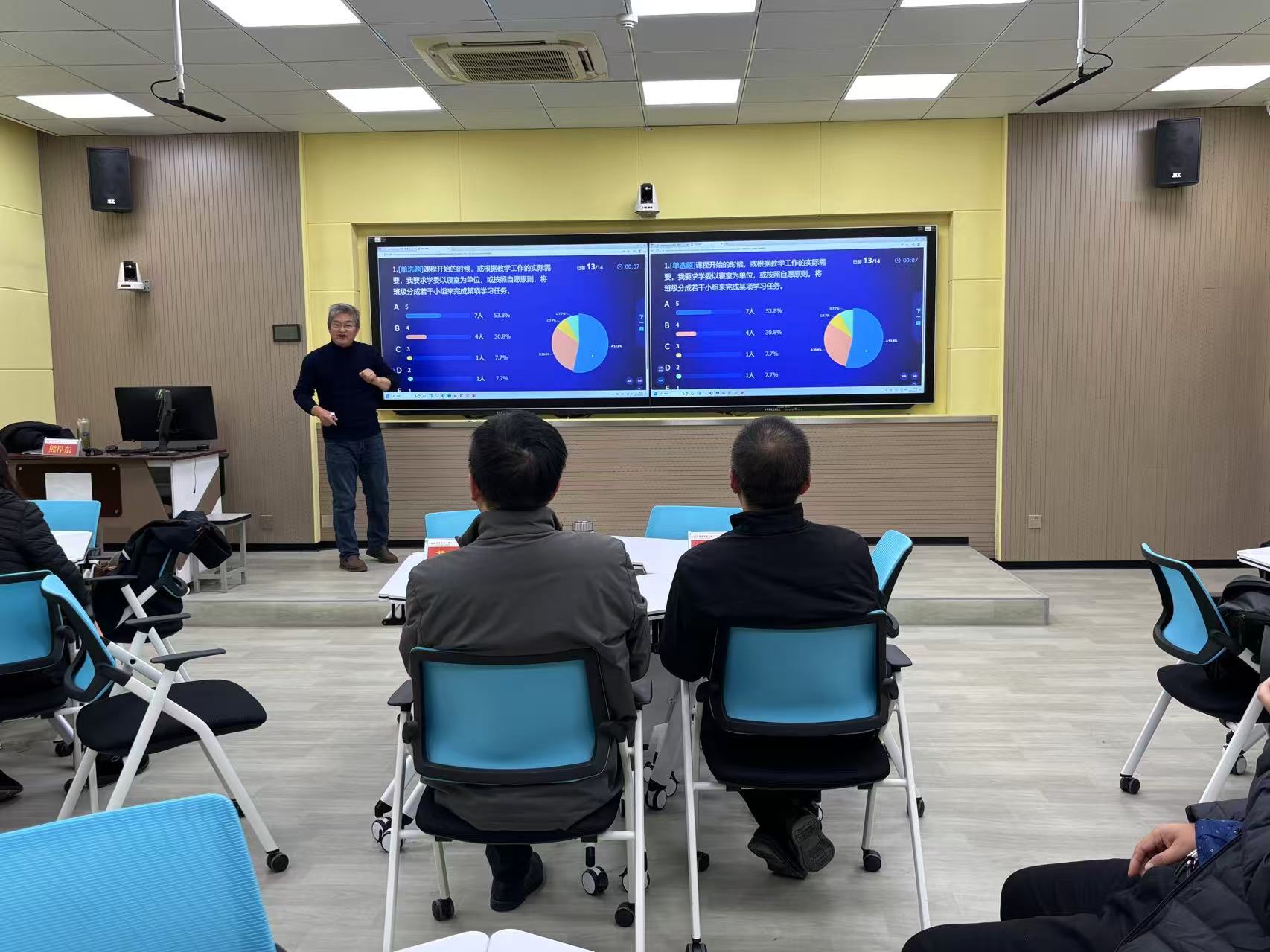 熊捍东副教授结合自身几十年的教学实践,围绕智慧教学平台的深度应用、研究生培养方案解读、研究生课程组织、实施与评价,以及课堂管理等方面内容,与在场教师分享经验。作为校级教学督导,他特别强调“讲台意识”的重要性,呼吁导师们以“终身学习”的态度持续打磨教学技能,在教学设计中兼顾知识传授与思维训练,真正实现从“教知识”向“育能力”的转变。整场讲座案例鲜活、语言风趣,既有方法论指导,又有实践示范,为在场师生呈现了一堂高质量的“教学示范课”。