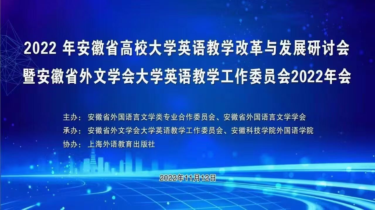 在全国上下深入学习宣传贯彻党的二十大精神之际,2022年安徽省高校大学英语教学改革与发展研讨会于11月12日在线举行。本次会议由安徽省外国语言文学类专业合作委员会、安徽省外国语言文学学会主办,安徽省外文学会大学英语教学工作委员会和安徽科技学院beat365在线唯一官网承办,上海外语教育出版社协办。全省各高校beat365在线唯一官网领导、大学英语教师700余人参会。我校beat365在线唯一官网大学英语教学部全体教师参加学习交流。beat365在线唯一官网院长、安徽省外文学会大学英语教学工作委员会主任王先荣教授出席会议并在开幕式环节致辞。