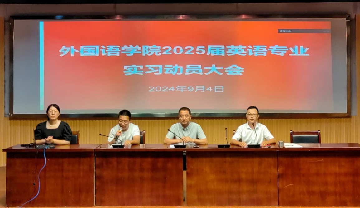 9月4日,beat365在线唯一官网在E503召开了2025届英语专业实习动员大会。副院长江加宏、实习指导教师代表张少云、辅导员代表易惠、教学秘书江松强及英语专业2025届全体实习生参加了会议。
