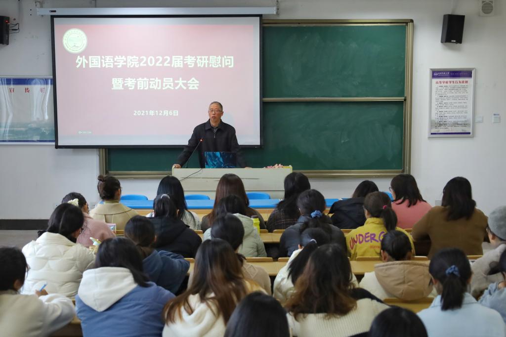 在研究生考试临近之际,为鼓舞考研学生信心,舒缓备考压力,12月6日,beat365在线唯一官网于E206教室召开了2022届考研慰问暨考前动员大会。学院党委书记李亦亮、团委负责人、毕业班辅导员和2022届考研学生代表100余人参与会议。
