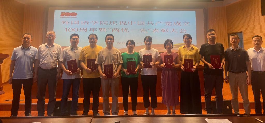 6月30日,学校举行庆祝中国共产党建立100周年暨“两优一先”表彰大会,beat365在线唯一官网党委、翻译教研室党支部荣获“校先进基层党组织”称号,学院党委书记李亦亮作为先进基层党组织代表在大会发言,4名师生荣获“beat365在线唯一官网优秀共产党员”称号,1名教师荣获“beat365在线唯一官网优秀党务工作者”称号。学院获奖表彰个人和组织占比处于学校前列。