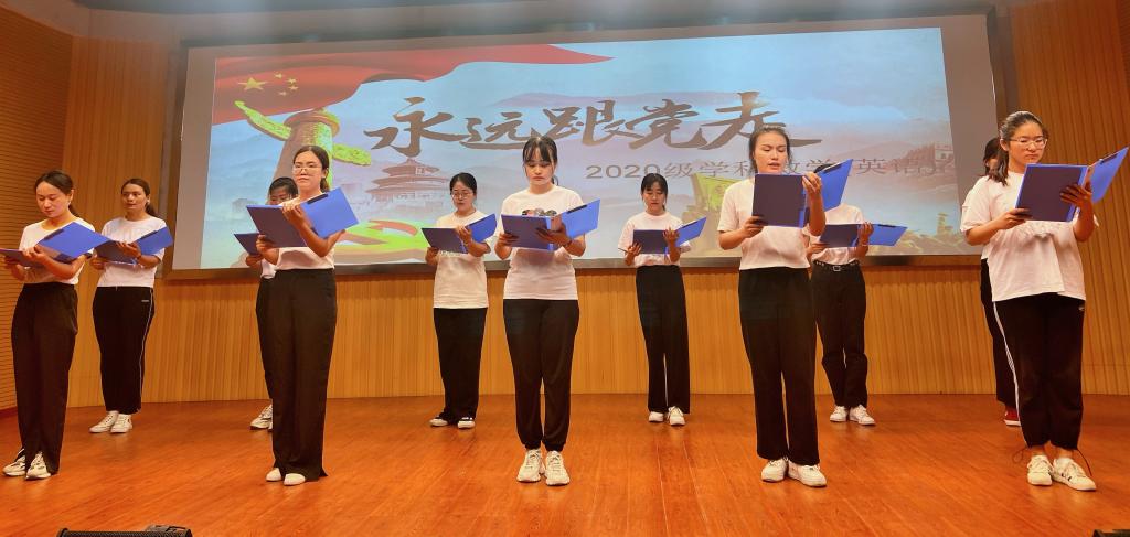 诵读红色经典赓续红色血脉。历史是最好的教科书,红色经典是共产党人加强党性锻炼的营养剂。经过2个多月的训练和选拔,6月7日学院开展了“永远跟党走”红色经典朗诵比赛,给300多名学生党员及入党积极分子上了一堂别样党课,让党史学习“声”入人心。“恰同学少年,风华正茂”“红军不怕远征难,万水千山只等闲”“数风流人物,还看今朝”……外国语言文学类专业2020(2)班的朗诵《重温红色经典,回顾百年党史》将毛泽东同志各个时期的经典诗文串联起来,铿锵有力的朗诵声牵动着在场每一位师生的爱国之心。