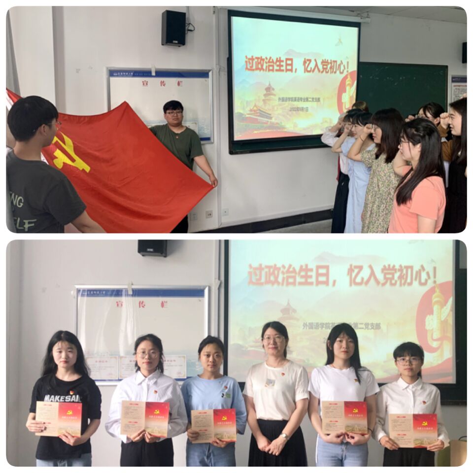 “政治生日”不仅仅是一种政治仪式,更是一次心灵洗礼。英语专业学生第二党支部以此次活动为契机,给党员加油充电,补足精神“钙质”,充分体现了组织对党员的关怀,强化了党员的身份认同,增强党员的责任感、使命感和归属感,进一步提升了党组织的向心力、凝聚力和战斗力。(撰稿:易惠 张婉儿 摄影:张婉儿 审核:王惠 李亦亮)