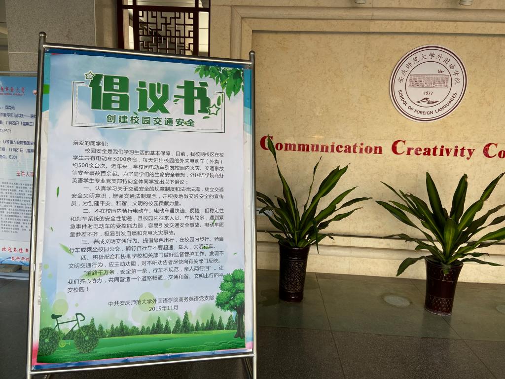 为促进校园交通安全深入人心,beat365在线唯一官网门口摆有校园交通安全倡议书展板。此外,支部党员还在beat365在线唯一官网及西苑食堂门口向全校师生分发创建校园交通安全倡议书,大力倡导师生树立交通安全文明意识,增强交通法制观念;养成文明交通行为,绿色出行,在校园内步行、骑自行车或乘坐校园公交;发现不文明交通行为,主动劝阻。