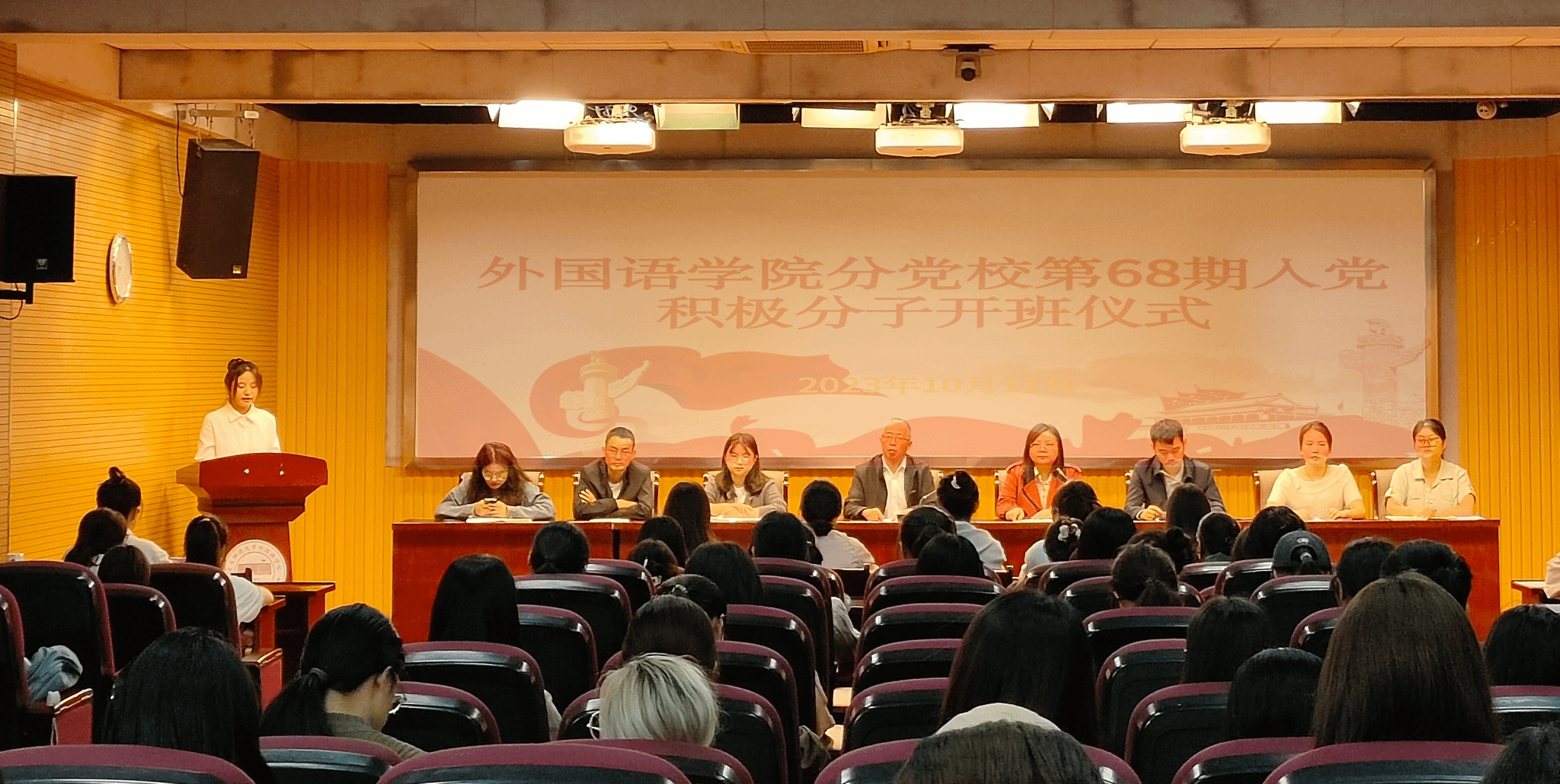 10月11日下午,beat365在线唯一官网在E503举行第68期入党积极分子开班仪式,学院党委书记李亦亮、党委副书记何媛君、学生党支部书记及第68期入党积极分子培训班全体成员参会,开班仪式由何媛君主持。