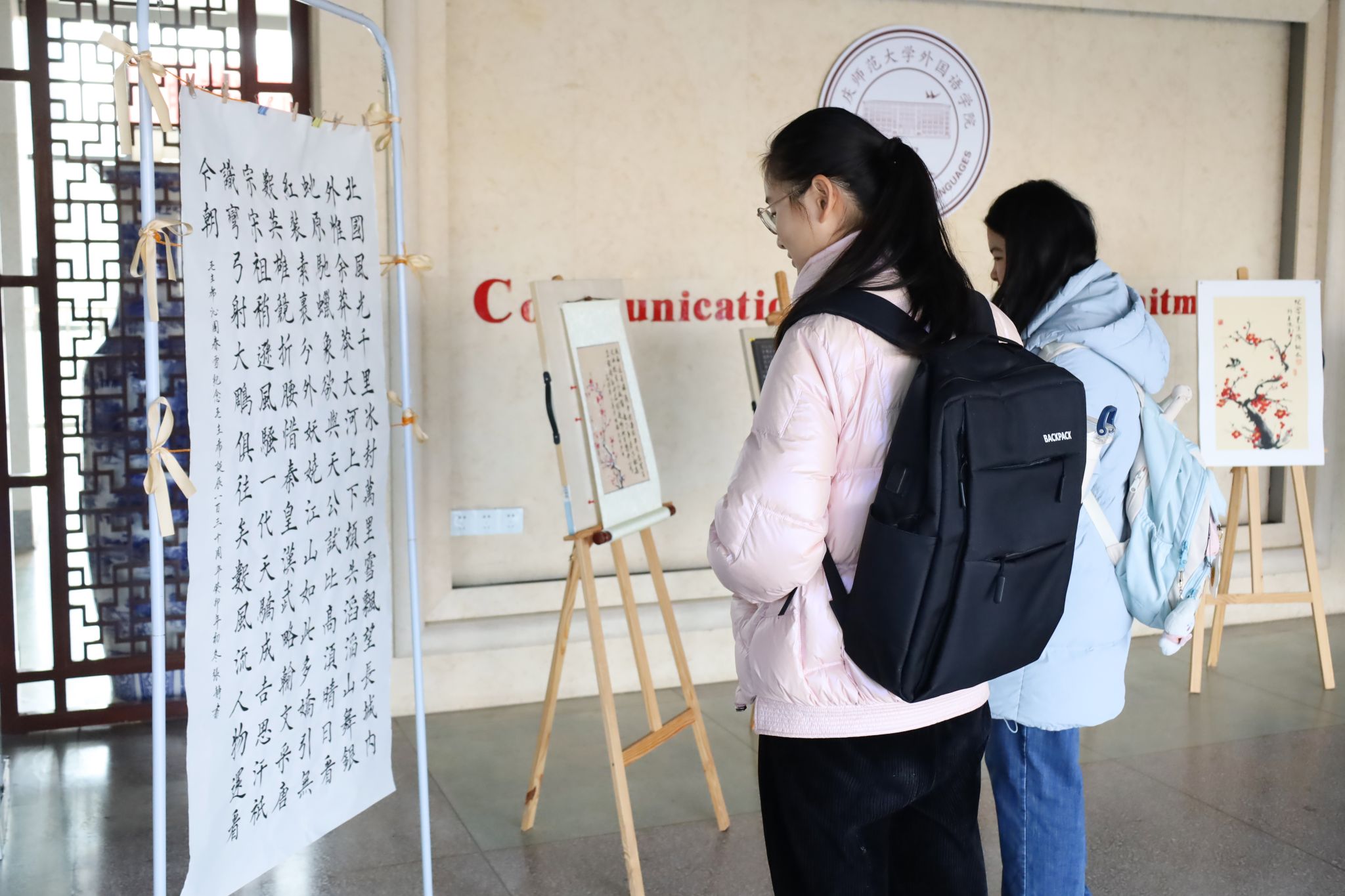刚劲有力的书法作品、充满质感与立体感的风景绘画、栩栩如生的人物剪纸……大厅内呈现的“红色文化”一度成了学生的拍照打卡墙。