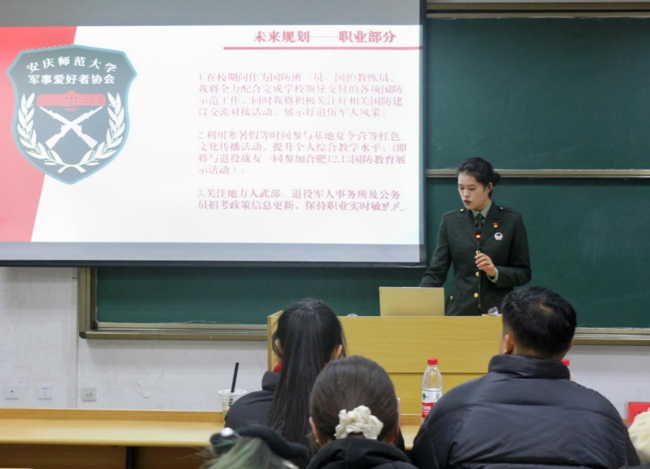 “过去五年在部队的经历非常珍贵,想与大家分享。我庆幸我的青春有穿军装的样子,而现在,我要奔赴下一个山海。”2023级商务英语1班谭宁在结束自己五年军旅生涯后,依然选择回归校园继续完成学业。她通过对自己部队经历、兴趣爱好以及当前学习进度的分析,对未来励志成为一名专职人民武装干部做出清晰规划。2023级英语2班周小焰在2023年寒假期间参加社区活动中,明确了自己想成为一名中学英语教师的目标。“教育是沟通现在与未来的桥梁,我也想成为一座横跨在知识的此岸与学生彼岸之间的桥梁。我希望能以专业知识为基础,承载学生们的希望。”