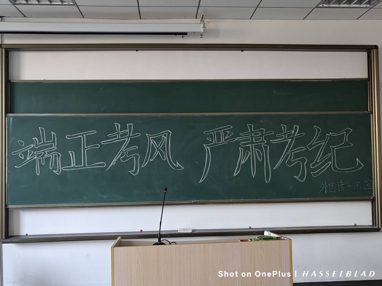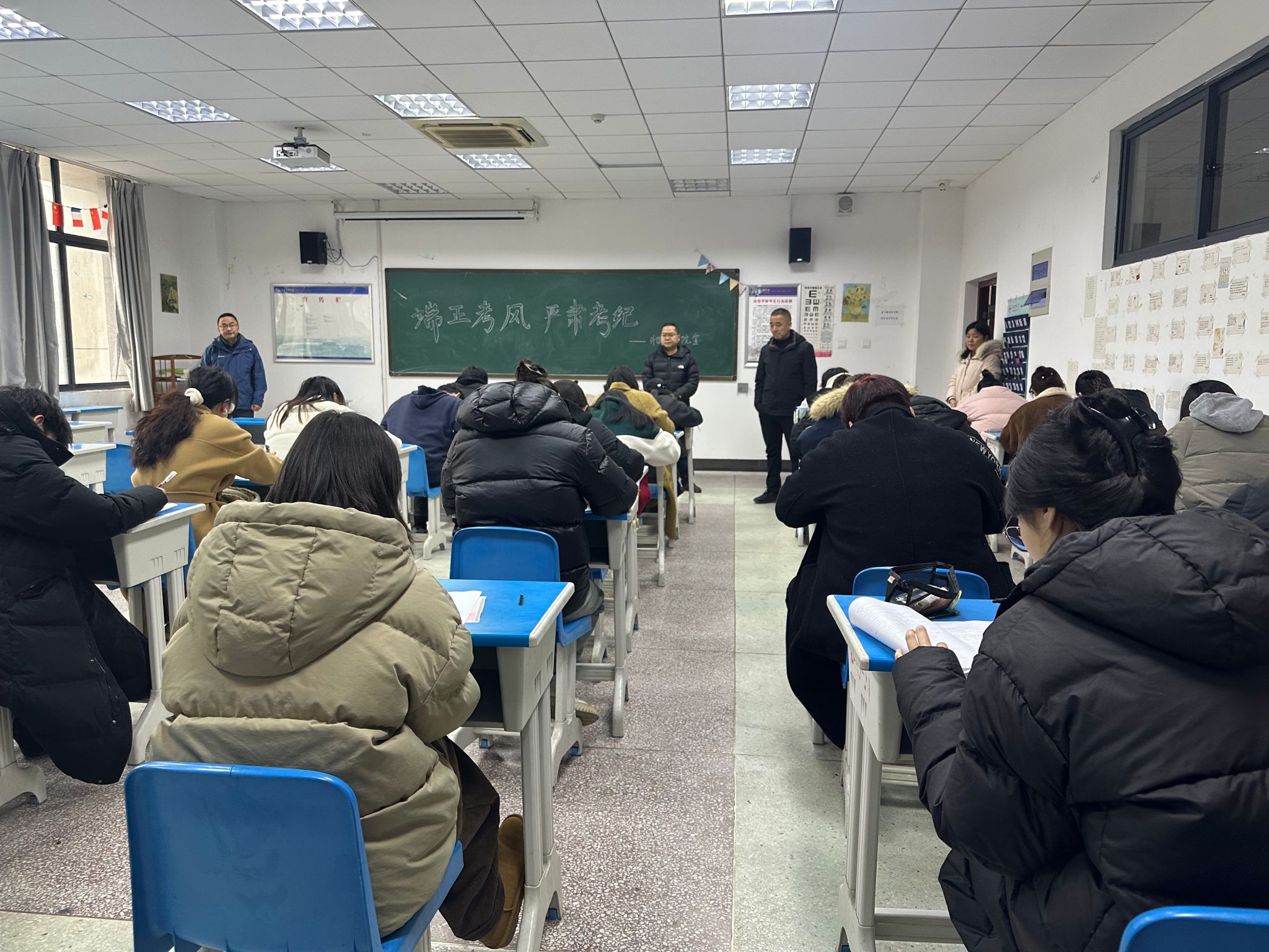 此外,学院充分利用线上平台推送与线下张贴相结合的方式,广泛发布诚信考试倡议书,精心布置考场环境,在黑板醒目位置书写“端正考风,严肃考纪”等励志标语,全方位营造诚信考试的浓厚氛围。